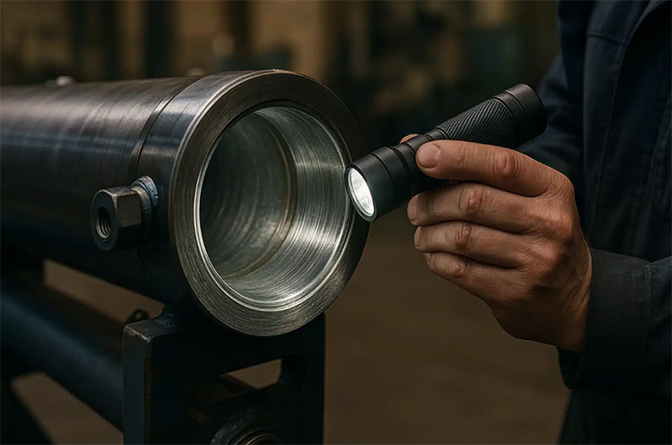 Поставете чист пръст в цилиндъра и докоснете вътрешната стена, за да проверите: Всяка драскотина по -дълбоко от 0,5 мм (около дебелината на ноктите) ще доведе до постоянни проблеми с замърсяването на течността. В същото време наблюдавайте дали вътрешната стена на цилиндъра има равномерни фини шлифовъчни линии. Ако има ярки петна или канали, това може да е знак за увреждане на буталото. Преди да поръчате резервни части, първо трябва да овладеете метода за точно измерване на хидравличния цилиндър.